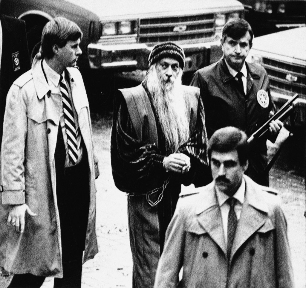 Note: The photo is of the Bhagwan Shree Rajneesh being arrested in Charlotte on Oct. 31, 1985 – Halloween!