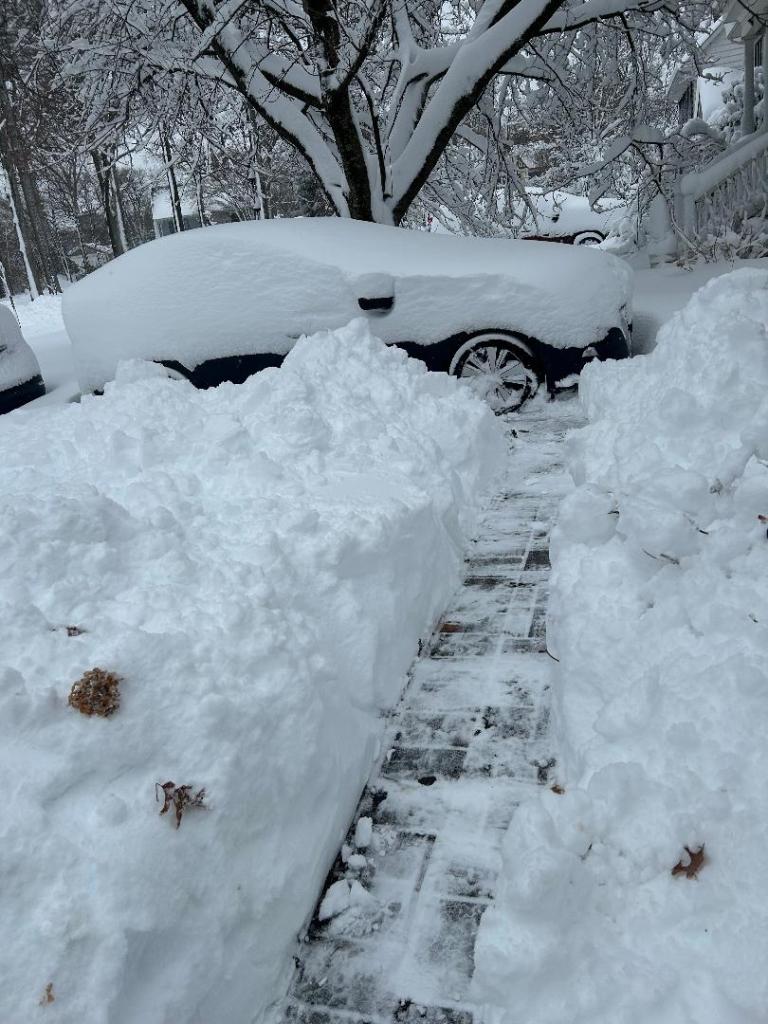 The local municipal authorities fine you if you don’t at least shovel the sidewalk in front of your house. I learned this the hard way our first winter here, two years ago. So, I’ll shovel just enough to avoid the wrath of the powers that be. The rest we’ll get to later.