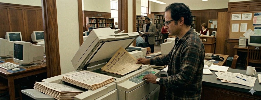 Image: An AI creation, attempting to replicate my copy machine experience in the New Haven library back in 1999.